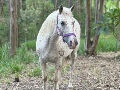 Kunama is a 9-year-old Appaloosa. This sweet girl was sadly rescued from a truck on its way to a slaughterhouse. She had previously been neglected and abused, and it has taken her some time to learn to trust people again. Kunama loves neck scratches and has a very sensitive soul. A fun fact: Kunama Namadji means Snowy Mountains in the Ngarigu language, which is where the inspiration for Kunama's name comes from.