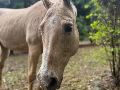 River is a 26-year-old quarter horse. He is a been there done that kind of guy! He is the newest member to the Meet Me In The Meadow family and he is the sweetest and most gentle! River loves scratches and pats and is now living happily in semi-retirement.